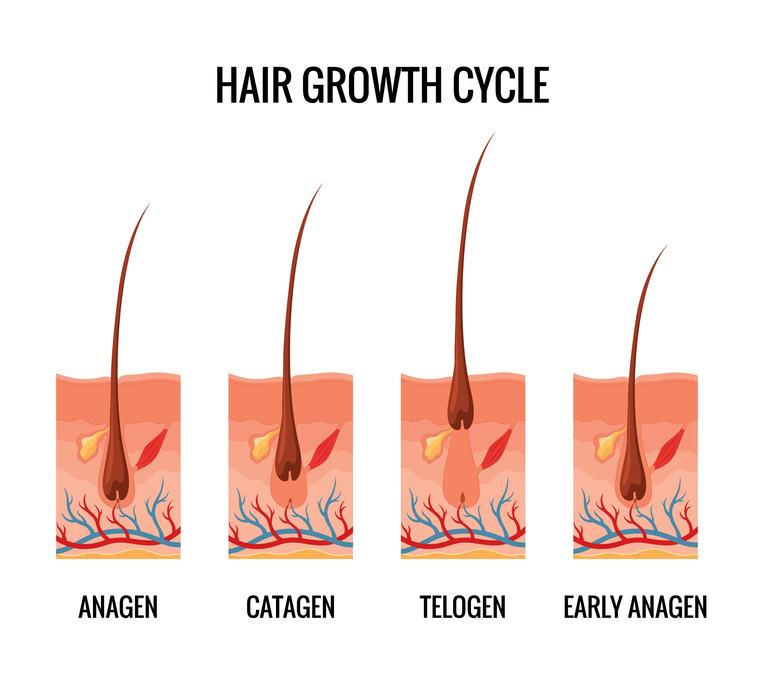 I will keep this brief because I know you did not come here for a biology lesson, but understanding this part actually matters.Each follicle cycles through three phases: anagen, the active growth phase lasting two to seven years; catagen, a brief two-week transition; and telogen, the resting phase where the hair sheds and the whole thing starts over.